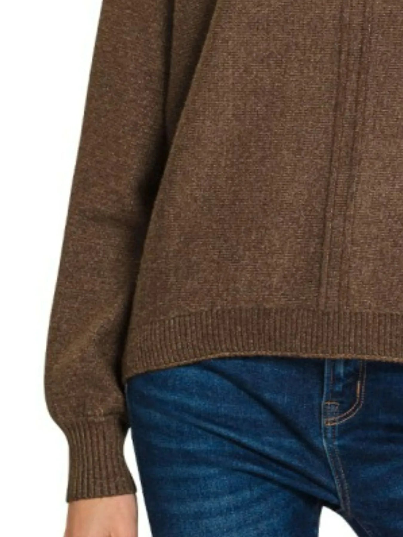 This cozy brown pullover sweater features a soft knit construction with premium yarn material that provides comfort and warmth. The classic crew neckline and relaxed fit make it perfect for casual everyday wear. The rich brown color offers versatility for easy styling with various bottoms. The center seam detail adds subtle design interest while maintaining a timeless silhouette. Made with durable knit fabric that's easy to care for and maintains its shape wash after wash.